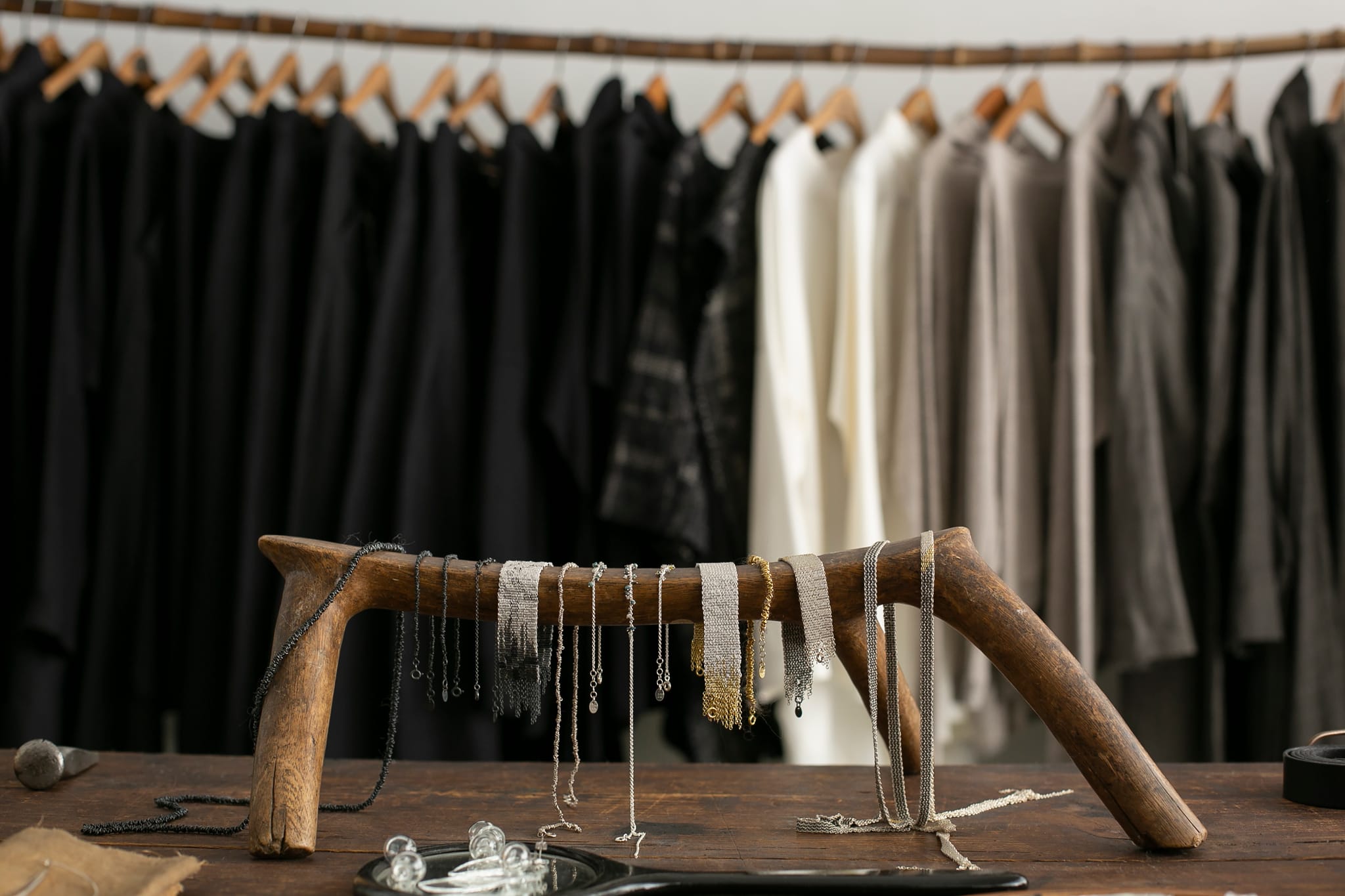 A temporary station in their journey through time, just as the hanging clothes which are destined to travel the world with their future wearers.